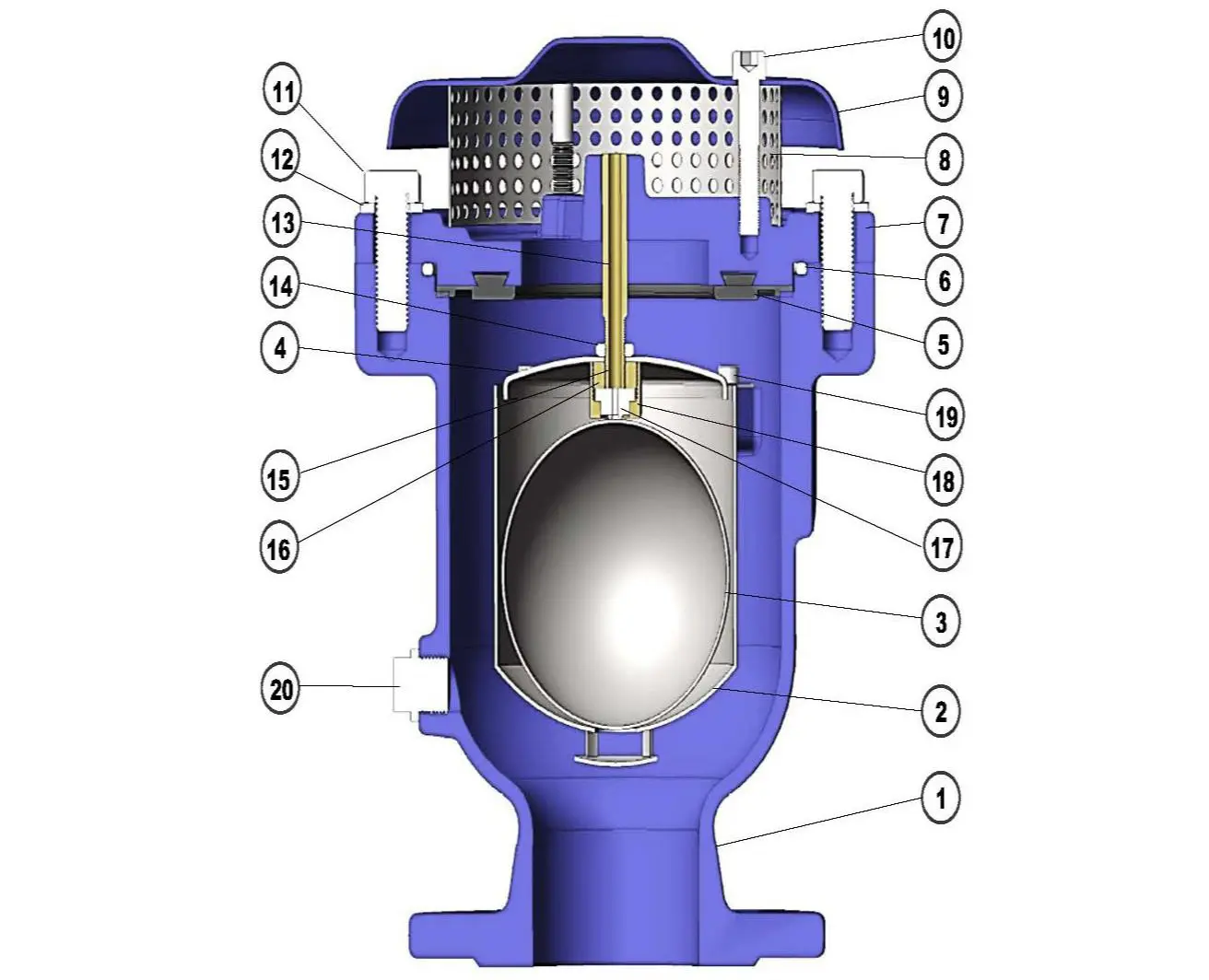 Combination Air Release Valve  which is self-operating float type and can be fitted to any peak on a pipeline, capable of fulfilling the venting requirement of the pipeline and release any air or gas under pressure accumulated in the pipe system automatically.